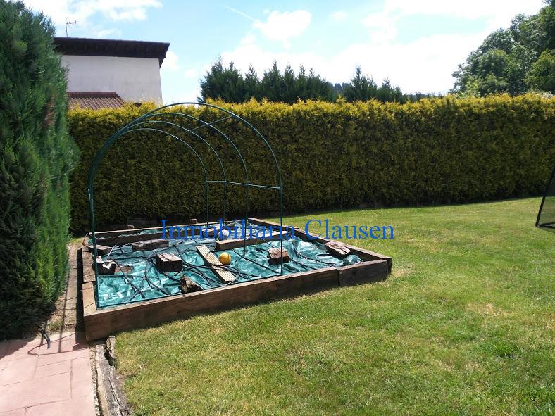 La parcela de 1.100 m2 está acondicionada con caseta de aperos, zona para colgar la ropa, leñera, 2 compostadores.. .