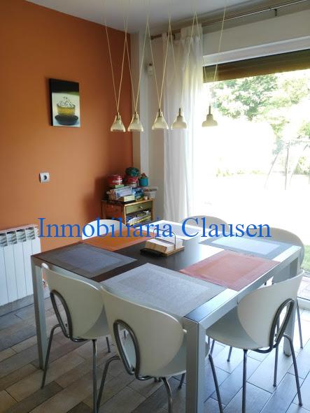 La planta baja está distribuida en hall, salón-comedor ( 37 m2) con chimenea y salida a un porche acristalado con estufa de pellets, habitación, baño con ducha adaptada, cocina con comedor de diario y despensa independiente con lavadora y secadora.